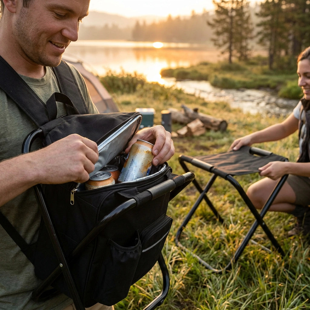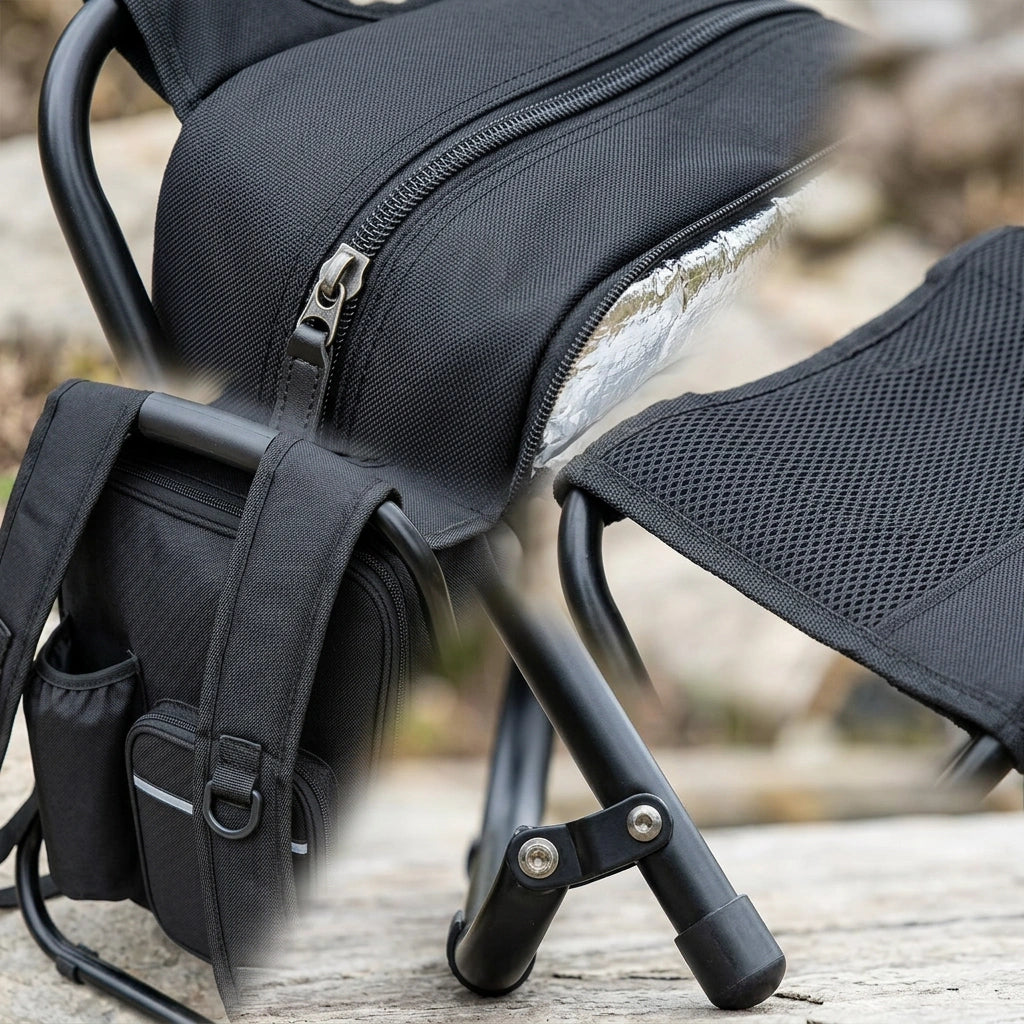 Portable Folding Backpack Chair Camping Stool Cooler Bag Rucksack Beach Fishing 150kg load Black